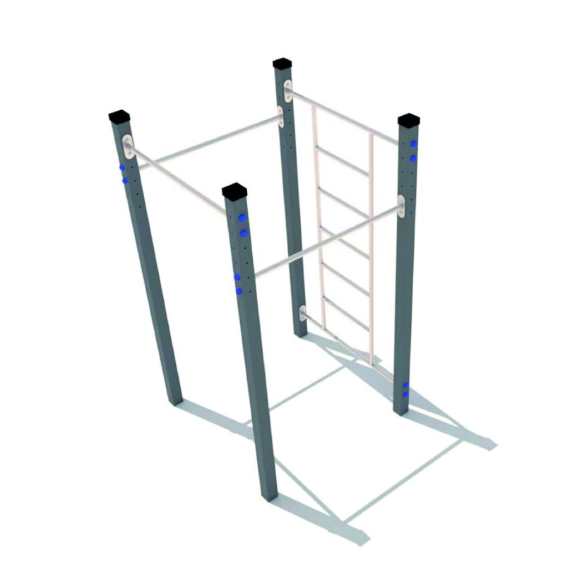 Cette combinaison comprend : 3 barres fixes sur 3 hauteurs différentes et d'un espalier ou échelle verticale.