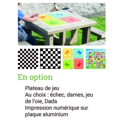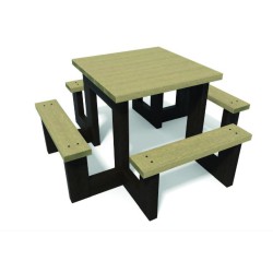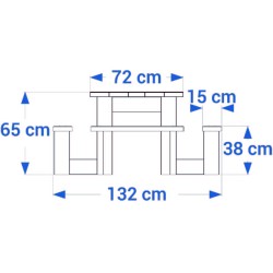 Table JUNIOR avec assises intégrées 132x132, hauteur plateau 45 cm et assises 38 cm