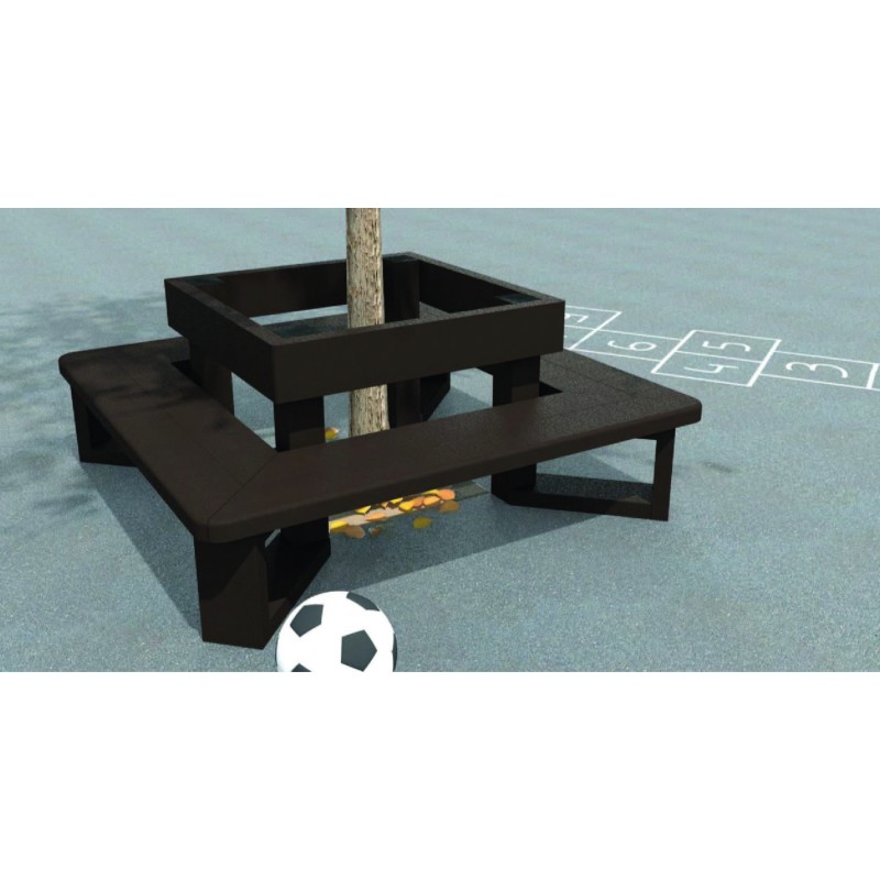 Banc tour d'arbre carré 120 x 120 cm avec assises à 28 cm et dossier hauteur 50 cm