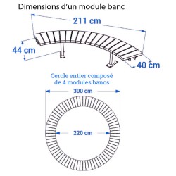 Diamètre extérieur 300 cm - Largeur 40 cm - Hauteur d’assise 44 cm