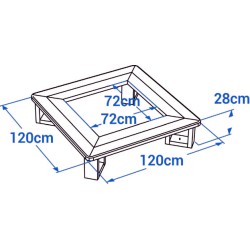 Dimensions hors tout 120x120 cm, Hauteur d’assise 28 cm