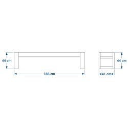 Hauteur d’assise 44 cm, largeur 41 cm, Longueur 188 cm