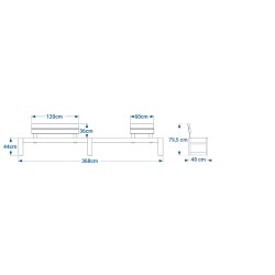 Hauteur d’assise 44 cm, largeur 41 cm, Longueur 368 cm