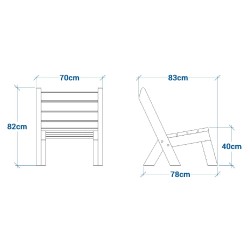 Chaise détente en plastique recyclé avec une hauteur d'assise de 40 cm inclinée