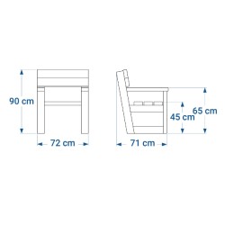 Fauteuil massif avec une hauteur d'assise plate de 45cm et un dossier incliné