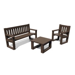 Banc en plastique recyclé avec assises d'une hauteur inclinée de 45 cm et un dossier incliné