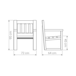Hauteur 95 cm, hauteur d’assise inclinée 45 cm, Longueur 72 cm