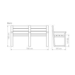 Largeur 64 cm, hauteur 100 cm, Longueur 180 cm