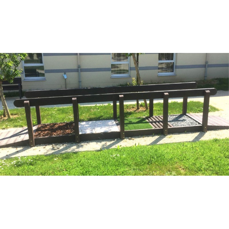 Produit idéal pour les EHPAD ou les maisons de retraite, les chemins podotactiles en plastique recyclé garantissent une bonne tenue sans entretien. Avec les rampes aux bords arrondis, garanties sans écharde, le plastique recyclé est le matériau parfait pour cet équipement modulable et évolutif.