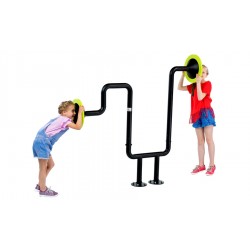 Ce jeu consiste à se transmettre entre deux personnes des chuchotements, des chants ou d’autres sons d’un bout du tube jusqu’à l’autre. Aucun son sort à l’extérieur, ce n’est que l’autre joueur qui peut les entendre. C’est une façon unique d’intégrer les visiteurs dans un terrain de jeux musicaux. Juste un peu d’imagination vous permet de pénétrer à deux dans un univers de sons spontanés et uniques.