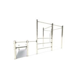 Module d'entraînement de cross-training et de street workout dans une aire de fitness outdoor. Cette combinaison de street workout offre plusieurs postes d'entraînement différents pour varier les exercices et solliciter l'ensemble de sa musculature !
