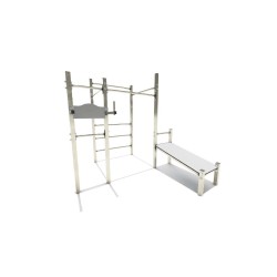 Module d'entraînement de cross-training et de street workout dans une aire de fitness outdoor. Cette combinaison de street workout offre plusieurs postes d'entraînement différents pour varier les exercices et solliciter l'ensemble de sa musculature !