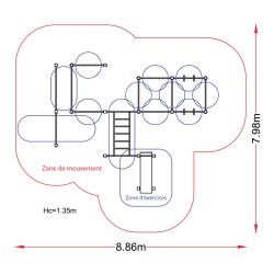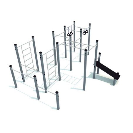 Très ludique, cette combinaison de structure de musculation en plein air va permettre au sportif de s'exercer en plein air et de solliciter l'ensemble de leurs facultés (musculation, cardio, conditions physiques, coordination...). En plus, cet agrès de street workout permet de s'entraîner en groupe !