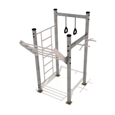Très ludique, cette combinaison de structure de musculation en plein air va permettre au sportif de s'exercer en plein air et de solliciter l'ensemble de leurs facultés (musculation, cardio, conditions physiques, coordination...). En plus, cet agrès de street workout permet de s'entraîner en groupe !