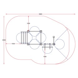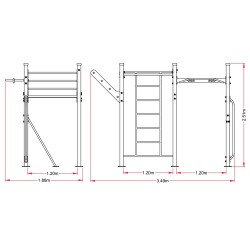 Cette combinaison comprend : des barres fixes hauteurs différentes, de 2 barres de traction, d'un espalier et d'une barre de pole.