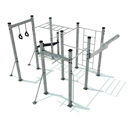 Très ludique, cette combinaison de structure de musculation en plein air va permettre au sportif de s'exercer en plein air et de solliciter l'ensemble de leurs facultés (musculation, cardio, conditions physiques, coordination...). En plus, cet agrès de street workout permet de s'entraîner en groupe !