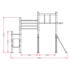 Cette combinaison comprend : des barres fixes de différentes hauteurs, de barres de traction, d'un espalier, d'une échelle horizontale, de poignées de traction et d'une barre de pole.