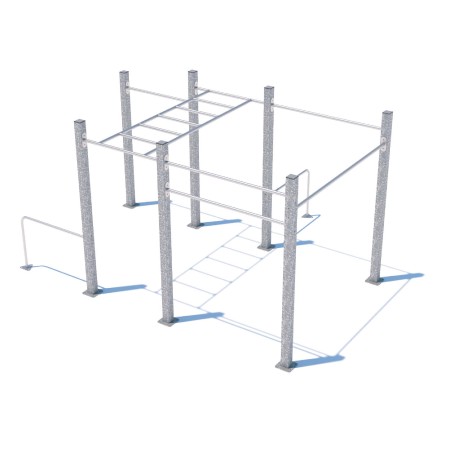 Très ludique, cette combinaison de structure de musculation en plein air va permettre au sportif de s'exercer en plein air et de solliciter l'ensemble de leurs facultés (musculation, cardio, conditions physiques, coordination...). En plus, cet agrès de street workout permet de s'entraîner en groupe !