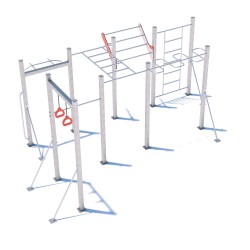 Très ludique, cette combinaison de structure de musculation en plein air va permettre au sportif de s'exercer en plein air et de solliciter l'ensemble de leurs facultés (musculation, cardio, conditions physiques, coordination...). En plus, cet agrès de street workout permet de s'entraîner en groupe !