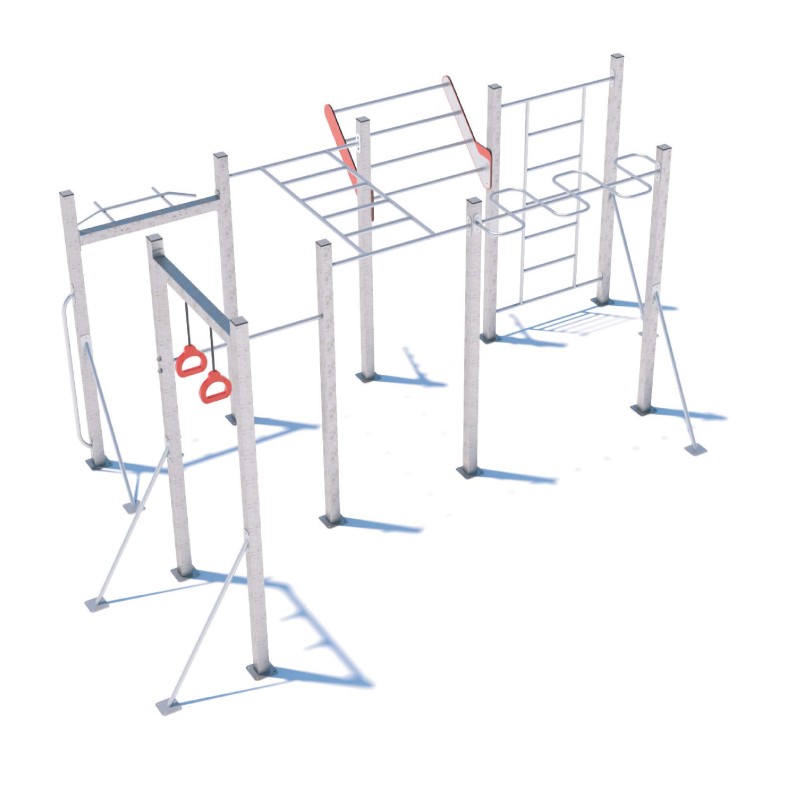 Cette combinaison d'équipements est parfaitement adaptée pour des espaces de Street Workout dans les parcs et les espaces sportifs de plein air.