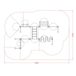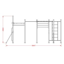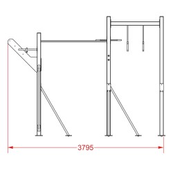 Cette combinaison comprend : des barres fixes de différentes hauteurs, de barres de traction, d'un espalier, 2 échelles horizontales, de poignées de traction et d'une barre de pole.