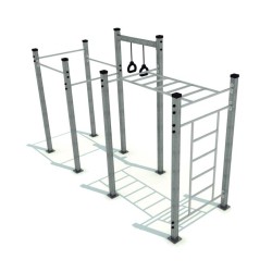 Très ludique, cette combinaison de structure de musculation en plein air va permettre au sportif de s'exercer en plein air et de solliciter l'ensemble de leurs facultés (musculation, cardio, conditions physiques, coordination...). En plus, cet agrès de street workout permet de s'entraîner en groupe !