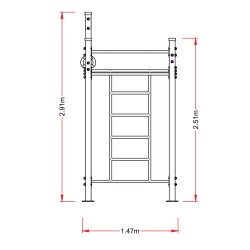 Cette combinaison comprend : des barres fixes de différentes hauteurs, de barres de traction, d'un espalier, d'une échelle horizontale, de poignées de traction et d'une barre de pole.
