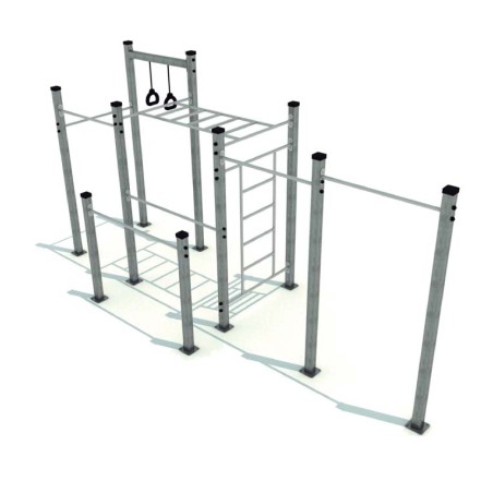 Très ludique, cette combinaison de structure de musculation en plein air va permettre au sportif de s'exercer en plein air et de solliciter l'ensemble de leurs facultés (musculation, cardio, conditions physiques, coordination...). En plus, cet agrès de street workout permet de s'entraîner en groupe !