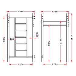 Cette combinaison comprend : 3 barres fixes sur 3 hauteurs différentes et d'un espalier ou échelle verticale.