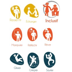 d'un escalier, d'un balcon, d'un filet incliné et de 3 panneaux de manipulation.