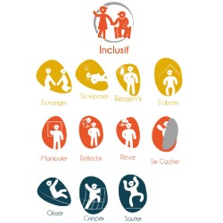 d'un panneau d'escalade avec prise de grimpe et d'une maisonnette.
