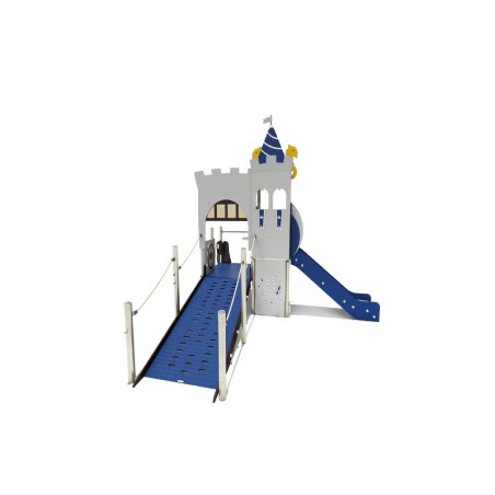 Ensemble composé d'une tour avec une grande et large plateforme inclinée accessible par un fauteuil roulant et qui permet d’accéder à un balcon :