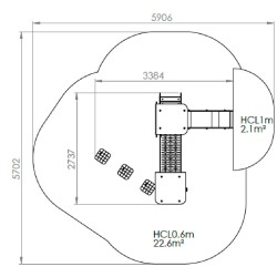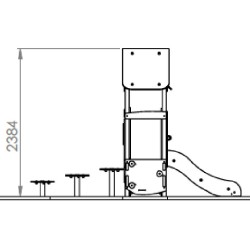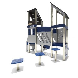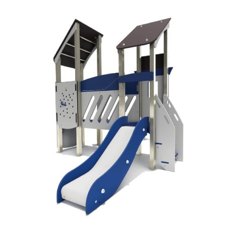 Ensemble composé de 2 tours reliées par une passerelle rigide, d'un escalier, d'un toboggan à glissières en PEHD,