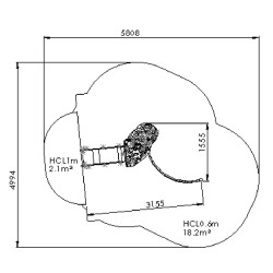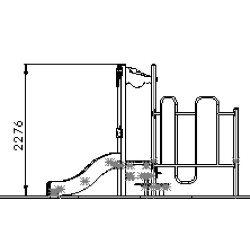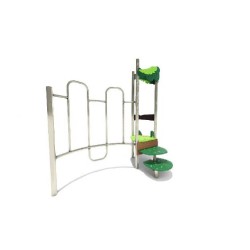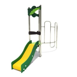 Ensemble composé d'une tour avec 1 toboggan à glissières en PEHD, d'un escalier en pas japonais et d'un mur de grimpe en inox.