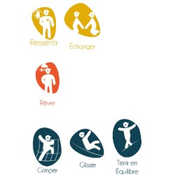 et d'un panneau d'escalade vertical avec prises de grimpe.