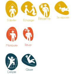 d'un panneau incliné avec prises de grimpe et d'un mât de pompier.