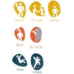 d'une échelle, d'un panneau incliné avec prises de grimpe et de 2 panneaux de manipulation.