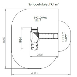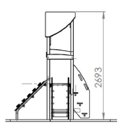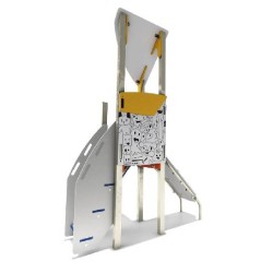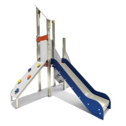 Ensemble composé de 1 tour avec un toboggan glissière en Inox, d'un escalier et d'un panneau incliné avec prises de grimpe