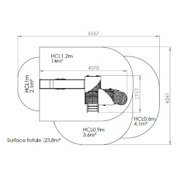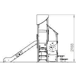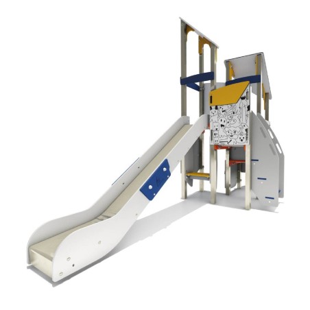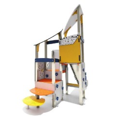 Ensemble composé de 4 tours juxtaposées avec 2 hauteurs de plateformes et un toboggan à glissière en INOX, d'un escalier, de pas japonais en escalier,