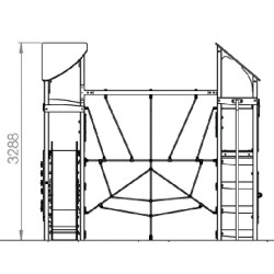 Ensemble composé de 2 tours reliées par une passerelle rigide avec un toboggan à glissière en INOX, d'un escalier, d'un mât de pompier,