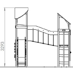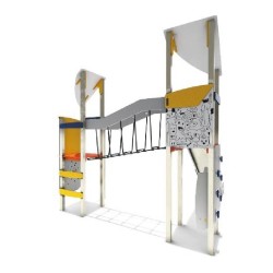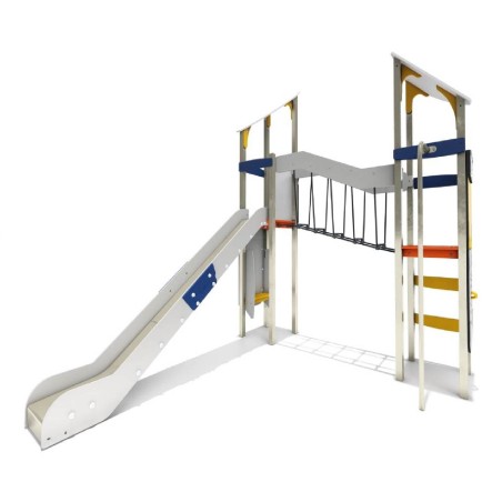 Ensemble composé de 2 tours reliées par un pont de corde avec un toboggan à glissière en INOX, d'un mât de pompier,