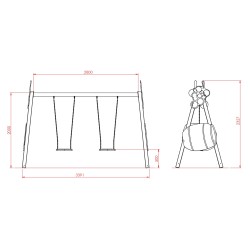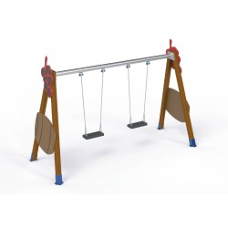 Balançoire classique pour aire de jeux pour enfants en bois lamellé collé traité et en métal avec double siège plat.