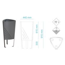 Cuve et structure en acier zingué. Platines pour ancrage au sol. Base d’ancrage