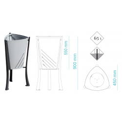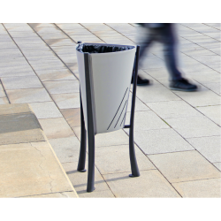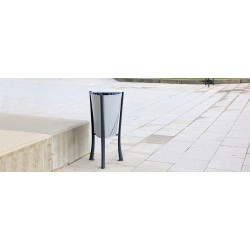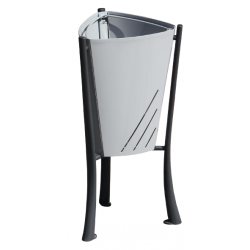 Bac et structure en acier zingué peint. Bac avec système d’anneau rabattable pour le sac poubelle. Piètement en fonte ductile.