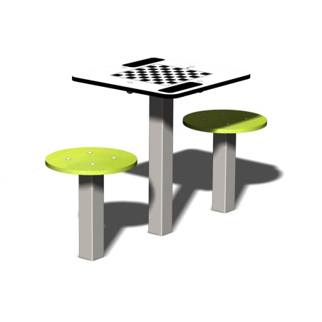 Ensemble comprenant 2 assises avec une table avec un damier pour jouer aux échecs