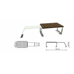 Banc avec table attachée, structure en tôle de fer pliée et lattes en HRC*