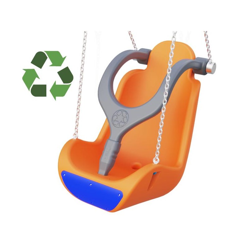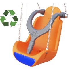 Balançoire inclusive avec système de fixation sécurisé, conçue et certifiée selon la norme EN1176-2.