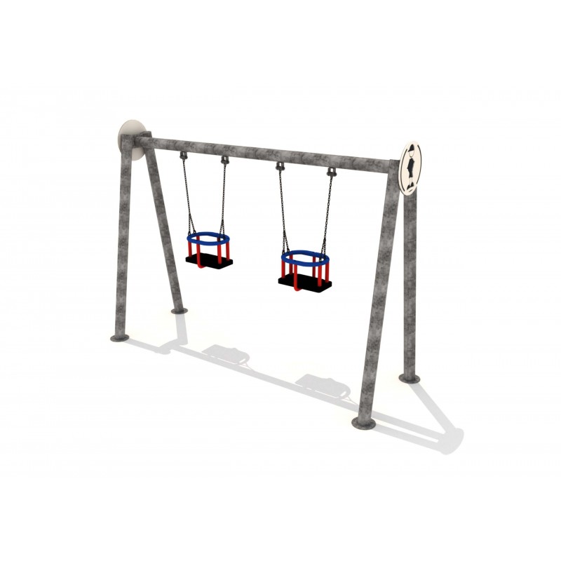 Voir la fichekeyboard_arrow_right BALANÇOIRE PMR avec 1 siège ergonomique avec ceintures et 1 siège bébé