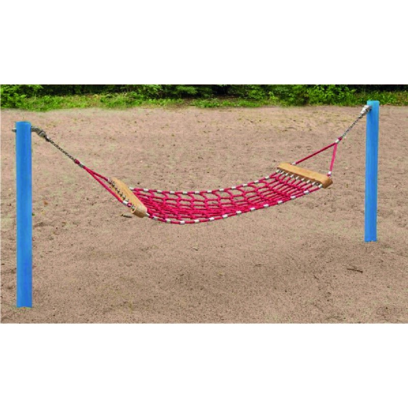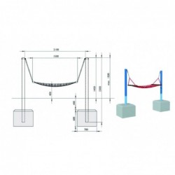 Ensemble comprenant 1 hamac 1.50m x 0.80m et 2 poteaux en acier galvanisé L 2m pour fixation avec béton coulé sur place. et 2 fixations pour montage vertical en inox.