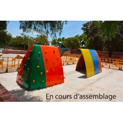 Mur d'escalade réalisé à partir de 4 bocks modulaires en composite